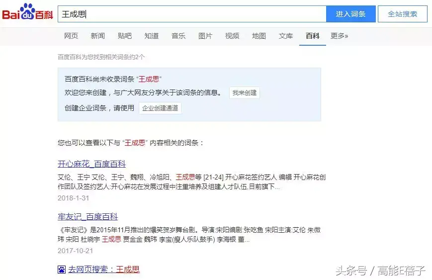 然鹅,谁家爱豆还没有个百度百科?王成思就没有。