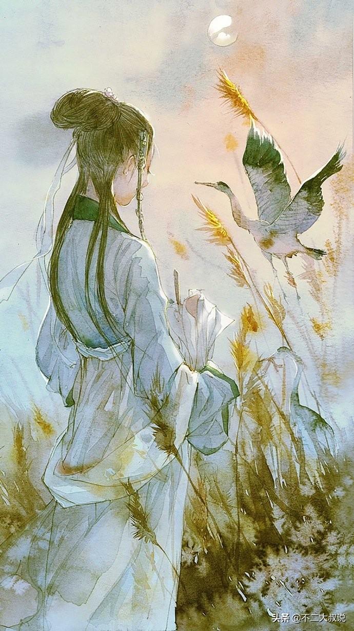 落日斜阳,青山独立,画面很是辽阔。而灵澈戴着斗笠,披着余晖,独自向青山走去,越来越远……