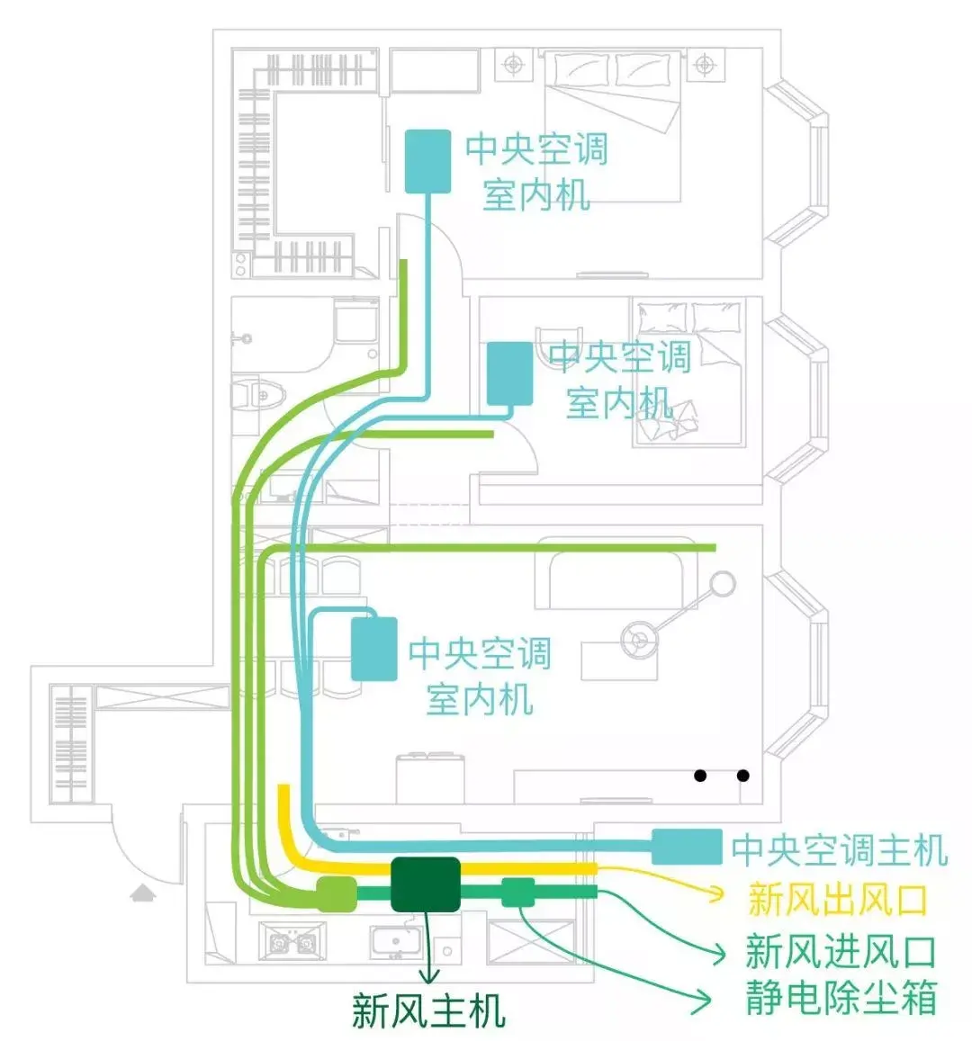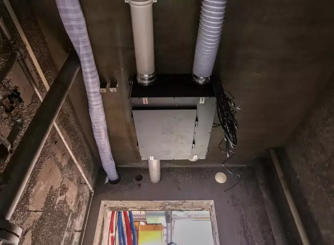中央空调新风安装和水电改造没有严格先后,差不多是同期进行的。