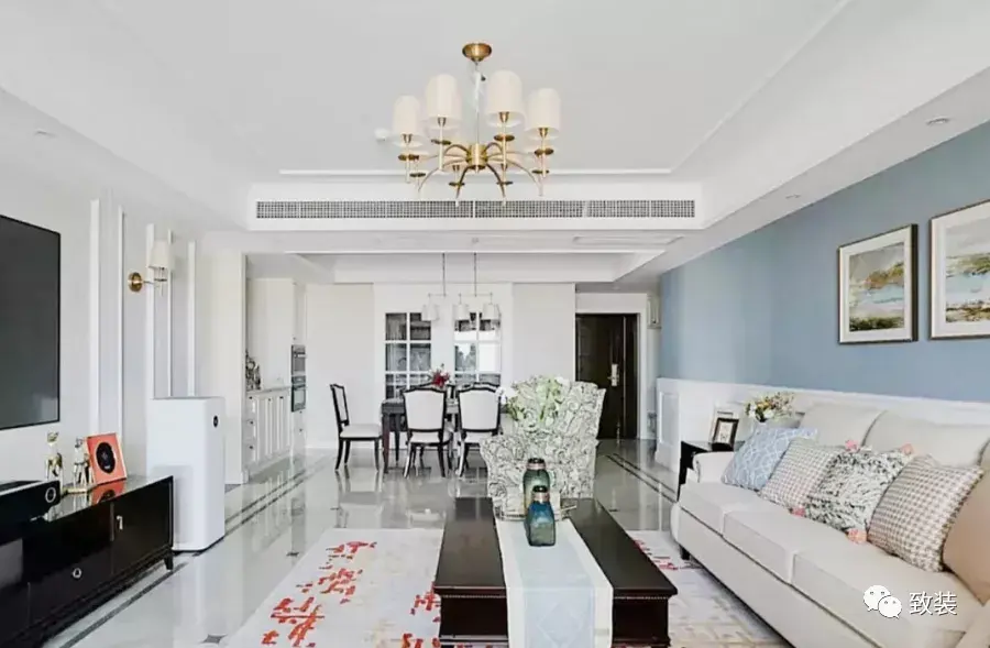 “客厅餐厅用中央空调,美观又好用,没有挂机的空调管,看着都整洁。”