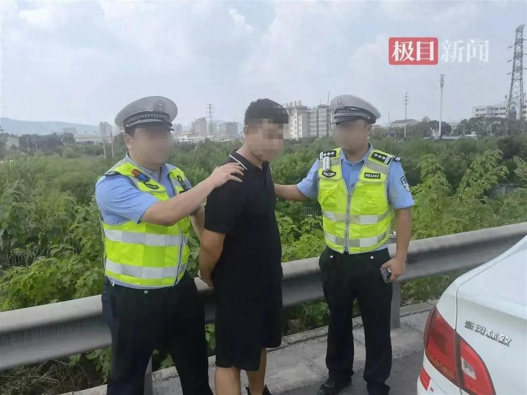 襄阳警方行动迅速,严密管控。一群乔装警察在前面掩护,一群便衣警察跟在后面提供支援。12时38分,该男子进入施工区域。交警用前面的卡车堵住车流,挡住了他们的去路。该男子不耐烦,立即跑向超车道,却被民警拦住。警察打开车门并拘留了该男子。