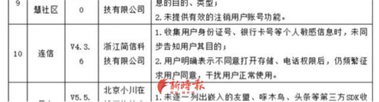 调查发现,2020年11月App违法违规收集使用个人信息治理工作组曾评估发布过35款存在个人信息收集使用问题的App,其中便包括连信。评估中指出,浙江简信科技有限公司旗下的连信App收集用户身份证号、银行卡号等个人敏感信息时,未同步告知用户其目的;用户明确表示不同意打开存储、电话权限后,仍频繁征求用户同意,干扰用户正常使用。