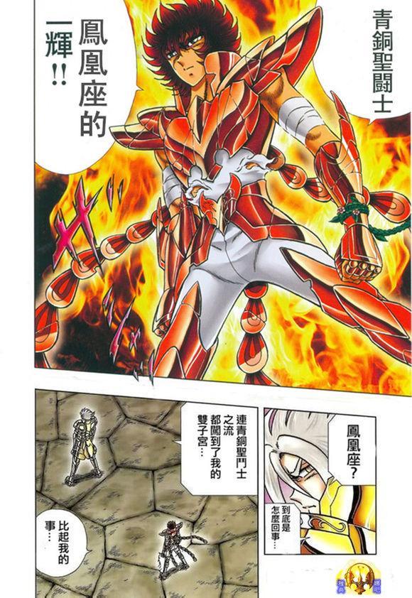橙色的凤凰圣衣,如同黄金圣衣一样发散着金灿灿的光芒。彩色漫画中的原配色,与心目中的整体偏蓝色的凤凰,还是有比较大的差别的。
