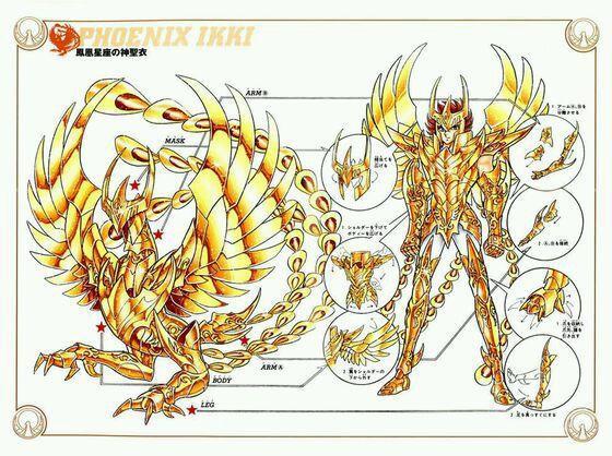 漫画中,凤凰座一辉的圣衣一开始就是金黄色的,这和最后到神圣衣统一了颜色。凤凰座圣衣,有自我修复的功能。