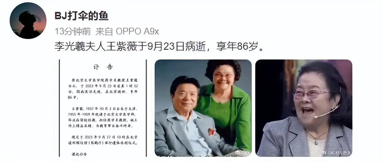 今日在朋友圈看到此消息,紫薇阿姨离世。感觉特别心痛。原以为阿姨的身体比李老师好很多,走路硬朗,说话温柔,做事清晰有条理,没想到在李光曦老师过世一年半后,也紧随其后了。老伴,老来相伴,老伴离开之后,另一半的身体和情绪确实需要家人好好照顾。