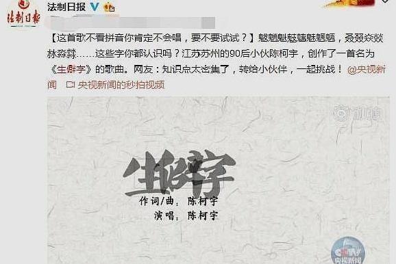 相信很多人都刷到抖音最火《生僻词》歌,这是首歌是有一名叫陈柯宇的90后原创歌曲。