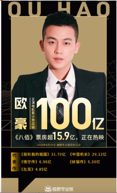 欧豪成为中国第七位百亿票房演员,同时也是最年轻的百亿演员,我们很多人通过《左耳》认识了这个年轻人,这个年轻人也用自己的青春给我们一个奇迹。