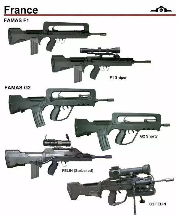 只是此时北约各国都将小口径枪弹改为SS109枪弹,但法国军队的FAMAS仍然使用M193枪弹。FAMAS最初的型号为FAMAS F1,随法军参加过乍得和海湾战争,表现尚可。除法国军队外,加蓬、吉布提、黎巴嫩、塞内加尔、阿联酋等国的军队也有装备FAMAS。