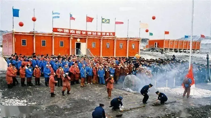 1985年2月15日,我国第一个南极科考站——长城站在南极洲乔治王岛菲尔德斯半岛南部建设完成,中国南极科考队的591名队员们仅用27天时间就建成了一座科考站,创造了各国在南极建站的最快纪录。五天后,长城站的落成典礼在大雪纷飞中举行。