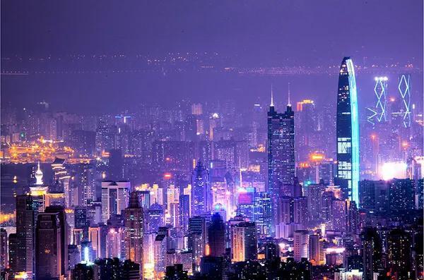 傍晚,登上地王大厦顶楼,伴着悠扬的音乐远眺,天是蓝的,云是红的,而从天边扑过来的是一片璀璨的灯光。像夕阳映照下的大海,闪烁着黄金般耀眼的光芒。