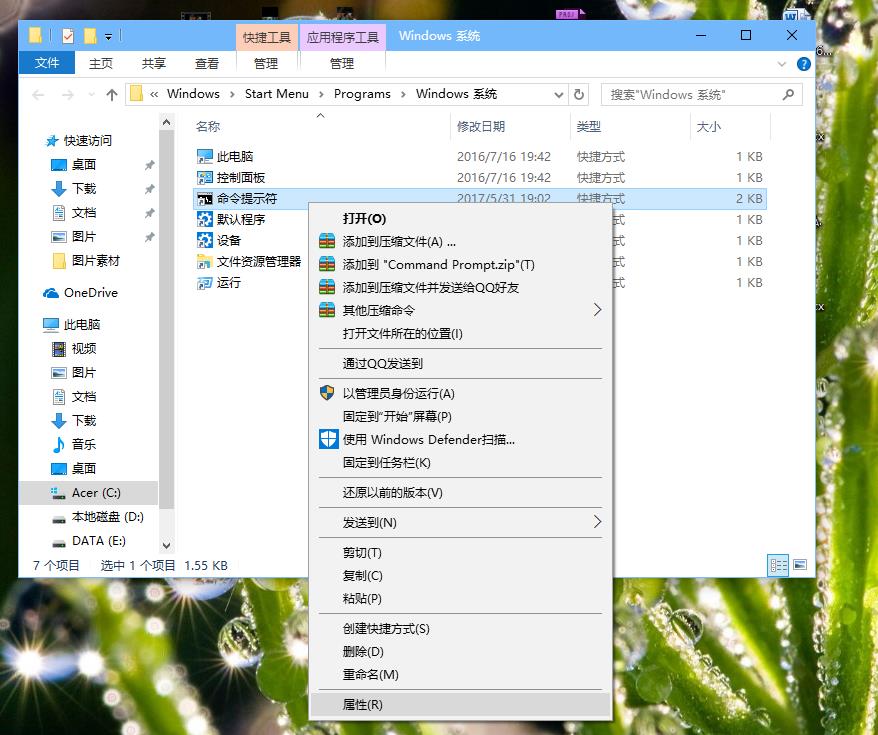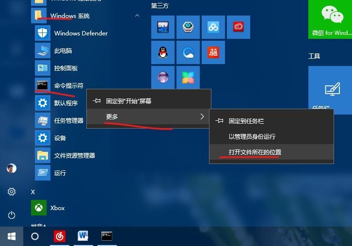 cmd主题你改吗,cmd一直默认背景是黑色,字体是白色。如果你想个性一点,不妨做一下,也是在开始菜单找到 windows系统 文件夹中的 命令提示符 然后按右键选 更多 再选 打开文件所在位置 如图: