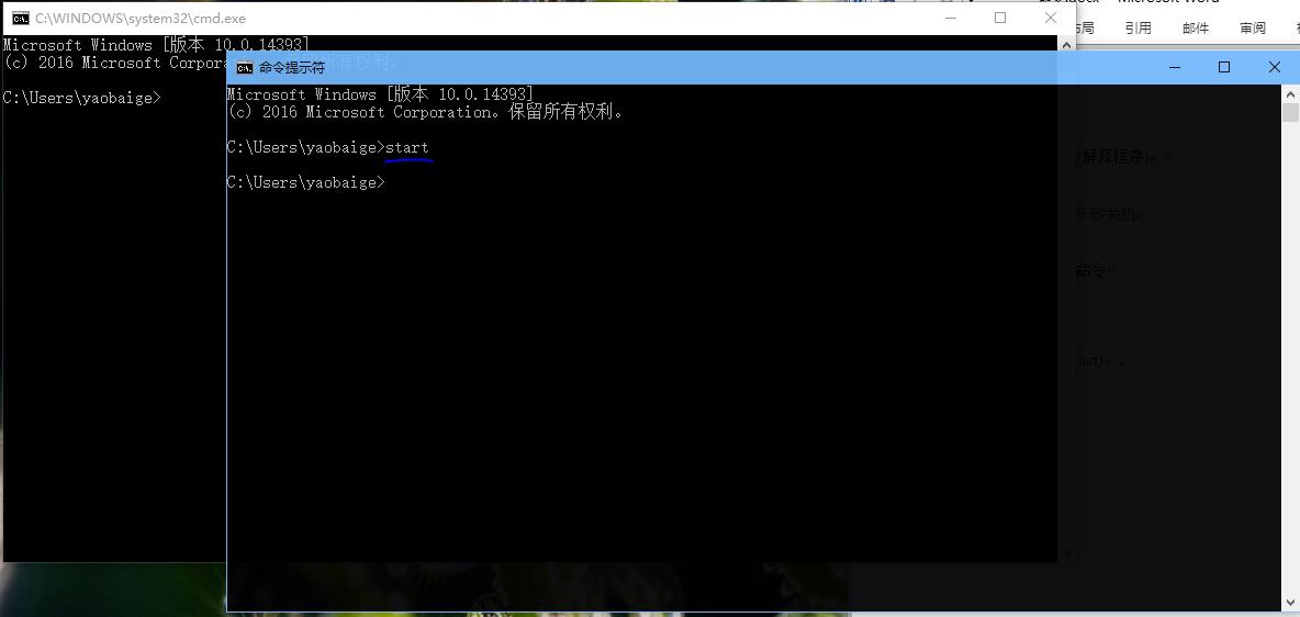 改完了,那就开始装逼吧,打开cmd命令,然后输入 start 这就会打开另一个cmd窗口,
