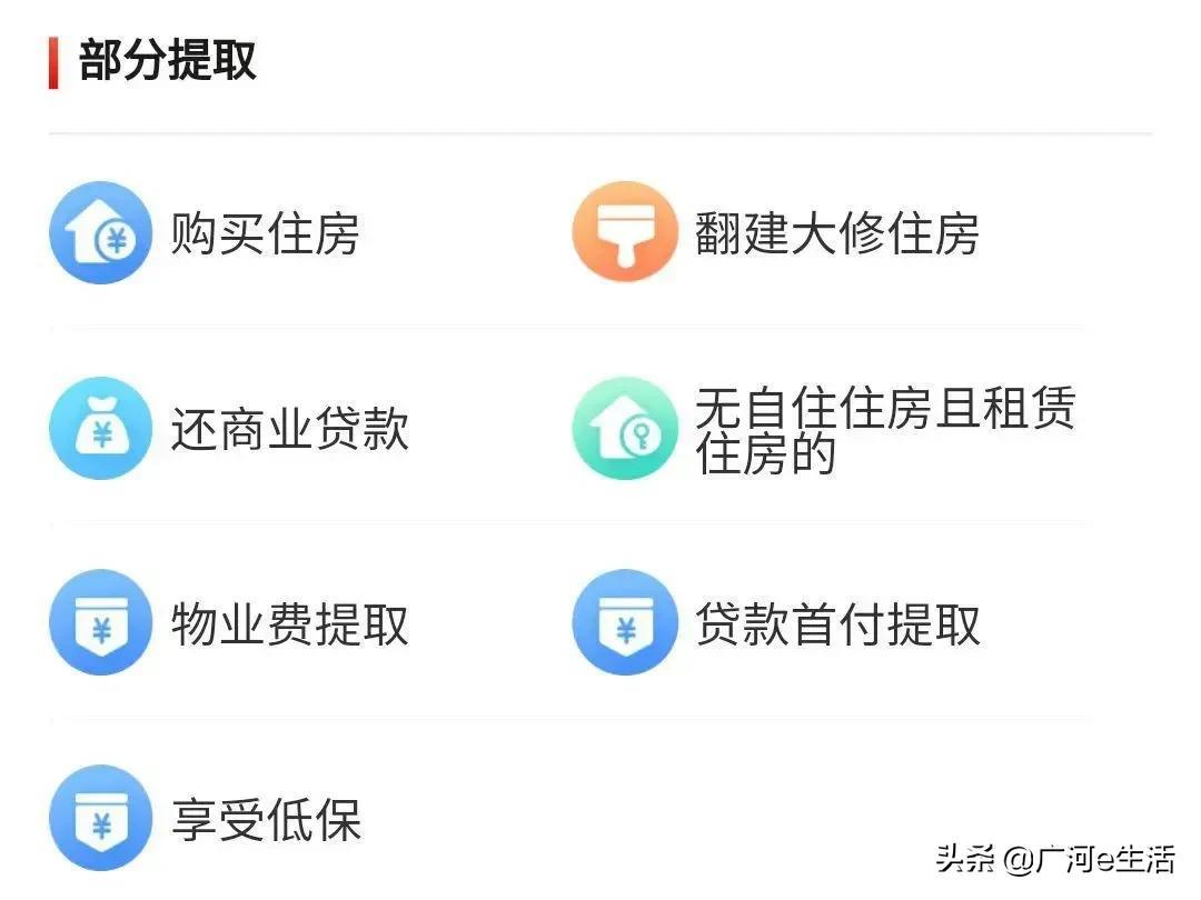 部分提取公积金应满足购买住房、翻建大修住房、还商业放贷、租赁住房、物业费、贷款首付、享受低保等条件。