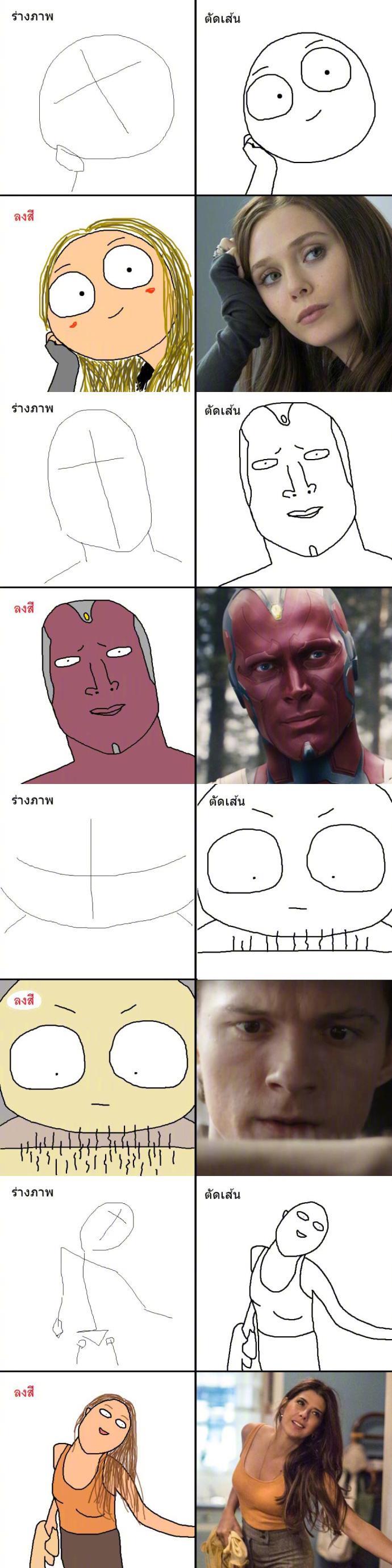 那么今天老师就给大家带来一篇灵魂画手的作品给大家,来自泰国灵魂画手(FB: )教你几步画出漫威角色的精髓,赶紧来欣赏一下叭: