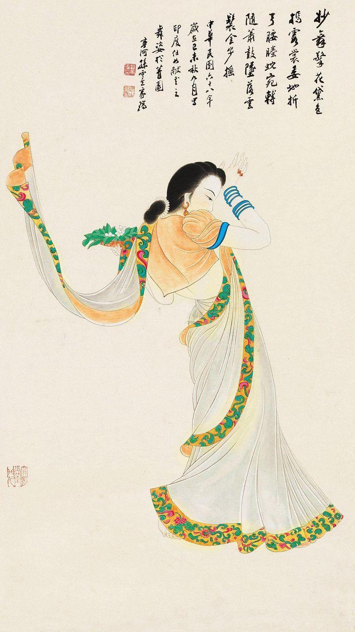 其人物有唐、宋用笔的简逸,设色瑰丽。