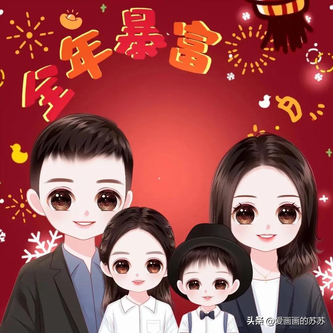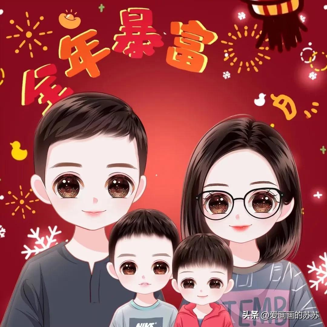 换个头像吧,一家3口的卡通全家福头像,满满的都是爱