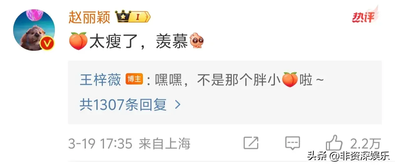 在与凤行拍摄时,小桃为了角色特意增重,播出之后她发了微博,俏皮的打趣,赵丽颖还给她留言,说太瘦了,可见二人私下的关系很好。