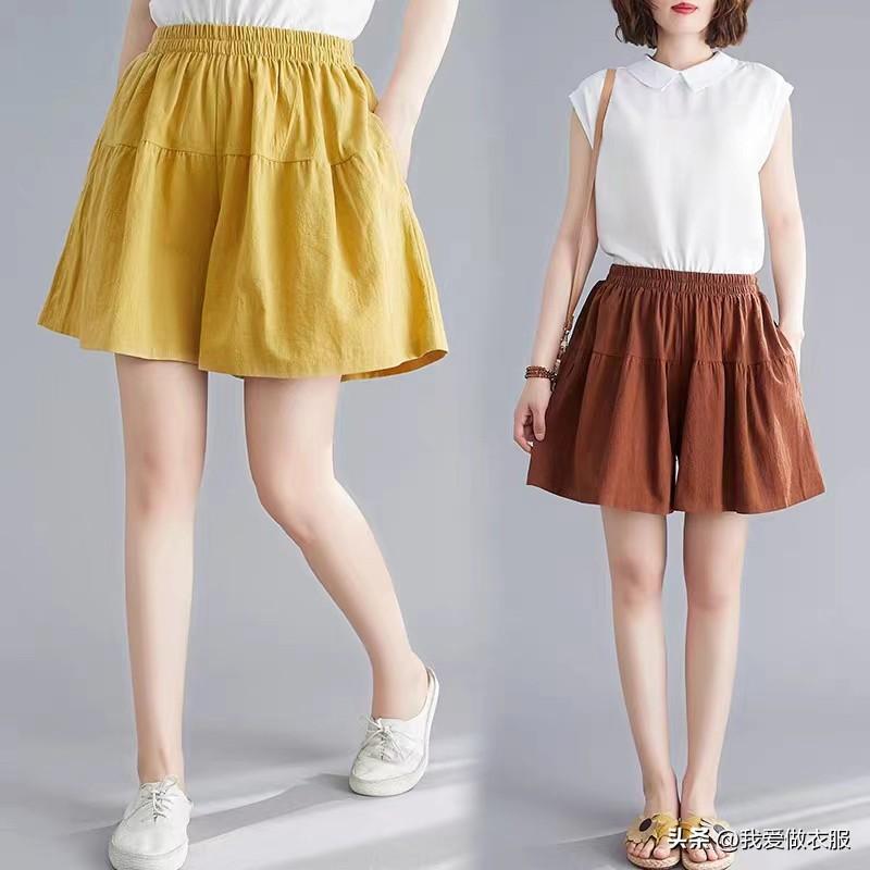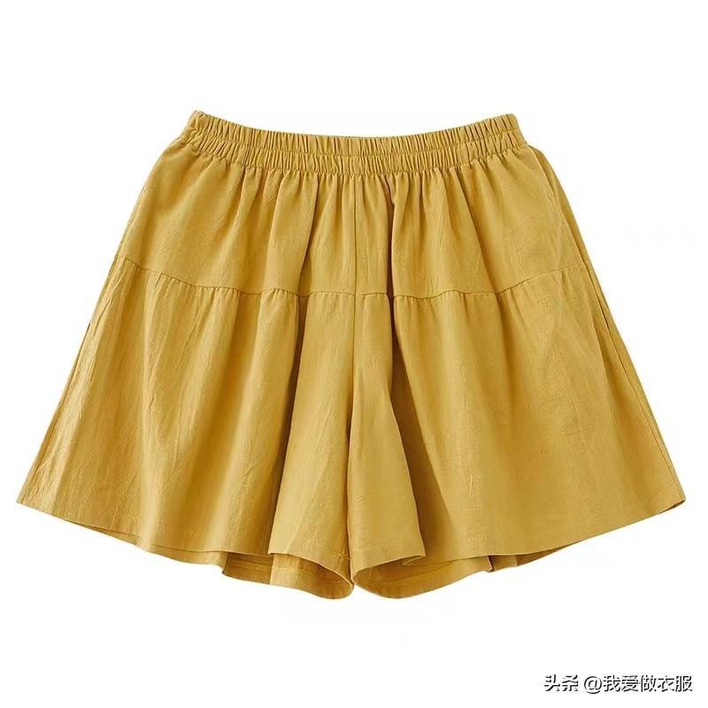 此款夏季裙短裤,透气性好,这款裤子不像我们平时的裤子,这款裤子摆放的比较大和裙子相近,上半部分大家可以剪成直线也可以剪成弧线,如果弧线的话看起来线条会好看点,裤子中间剪开的地方上下都需另外放缝头,下半部分的褶皱地方大家如果想摆更大点的话可以在此基础上加放的更大一点。当然也要看大家的布料而定。腰部松紧的宽度是1寸,直档要比我们平时的裤子最好长0.5寸左右,这样穿着也舒服,外观看起来也比较平整一些。臀围放松量在5寸左右,放量其实只对于上半部分的作用,下半部分因为褶皱的原因效果并不明显。