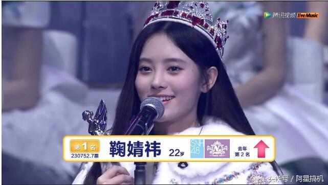 “四千年第一美女”鞠婧祎荣获SNH48年度总决选第一名