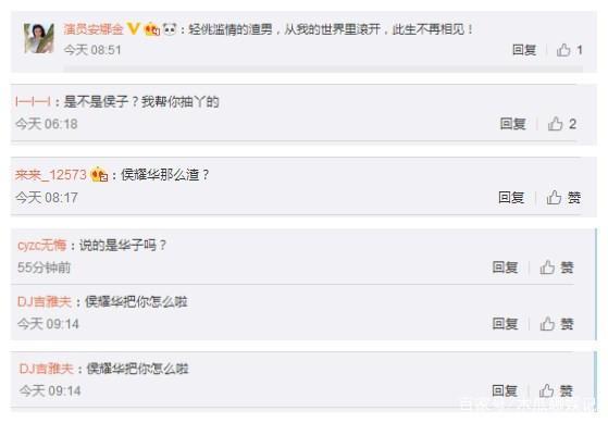 网友们纷纷对此揣测,甚至直接在安娜金微博下方留言问道“是说的你师傅候耀华吗”,而安娜金有回复网友“渣男从此不再相见”的言论,并且置顶在评论上方。