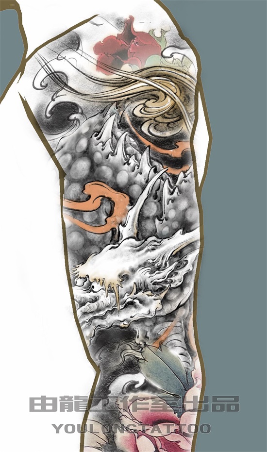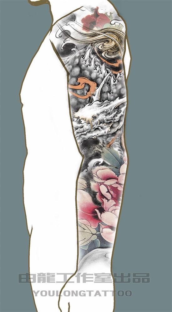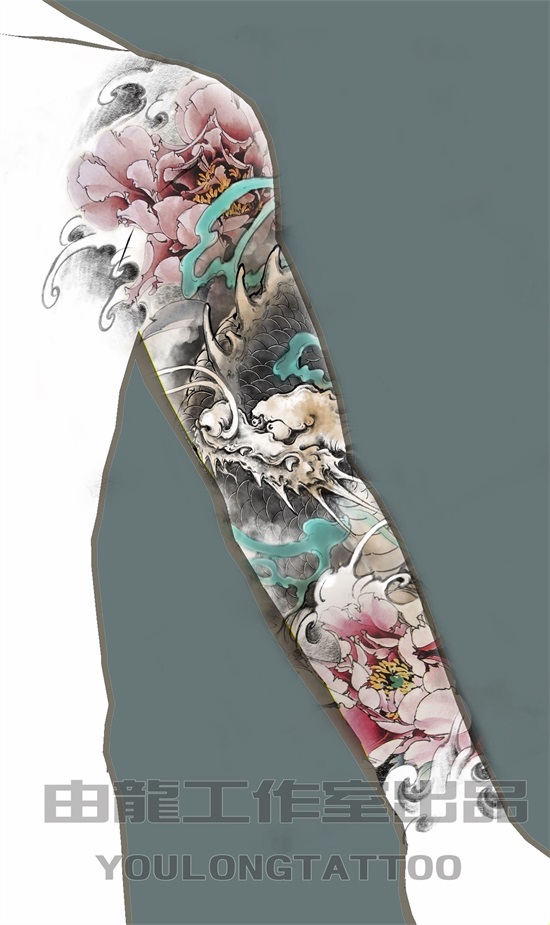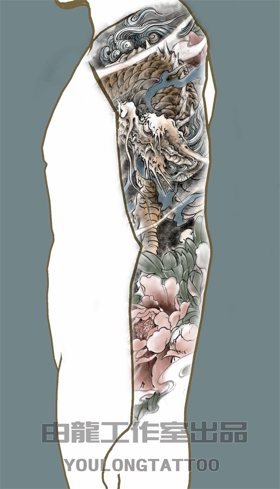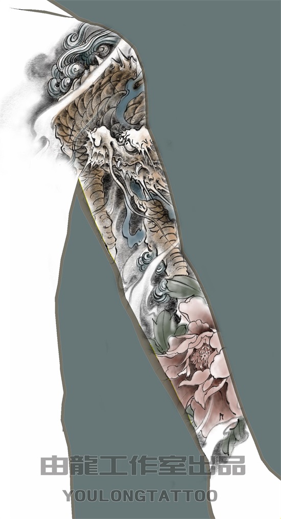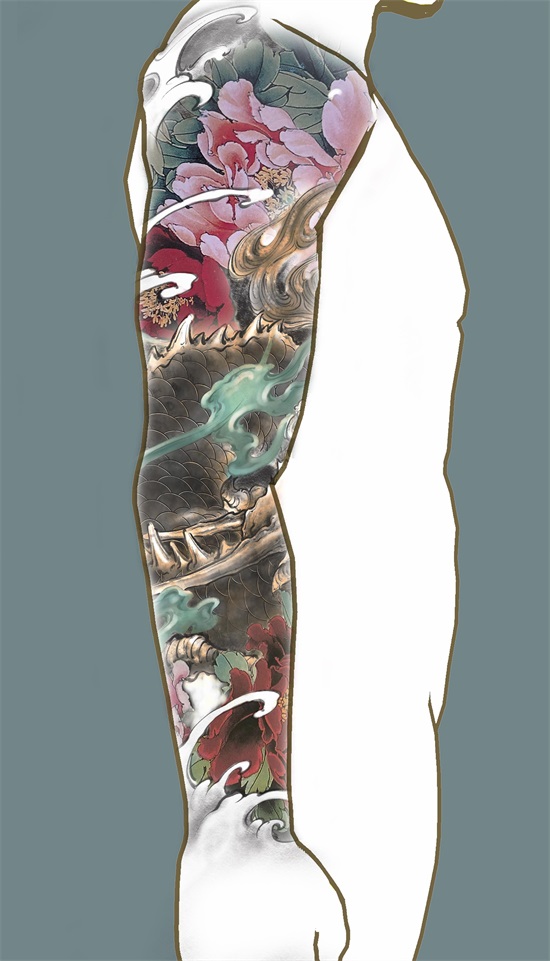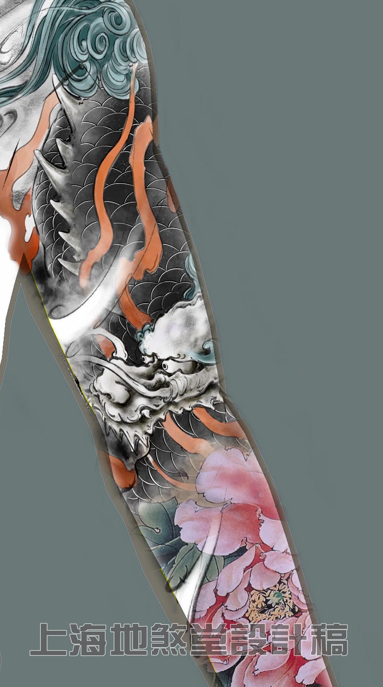 众所周知,麒麟乃传统神兽当中象征吉祥的灵兽,有关于麒麟的寓意这里不做赘述了,因麒麟姿态威武挺拔,精神抖擞,麒麟纹身象征着男人正值壮年以威武之躯在事业的道路上披荆斩棘,体现自我价值和对事业的蓬勃发展的祥瑞征兆,以下几幅麒麟纹身图案的花臂ps效果图,为由龙老师设计,麒麟图案加以象征富贵的牡丹作以衬托,使画面更加丰富多彩。