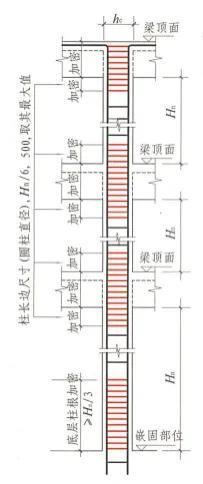 2、首层以上柱箍筋分别为:上下部的箍筋加密区长度为500mm,柱长边尺寸,六分之一倍的净高,三者比较取大值。
