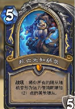 这张卡适合主动解场 然后去进化残血的大哥随从 只要对面一回合解不掉 基本就走远了 青玉嗜血萨前期铺场本来就猛 加上退化6费的魅影歹徒进化 英雄技能进化 还具有了不错的打后期能力 简直是一张强力卡 竟然还有人觉得弱? 看看法爷那张废卡。