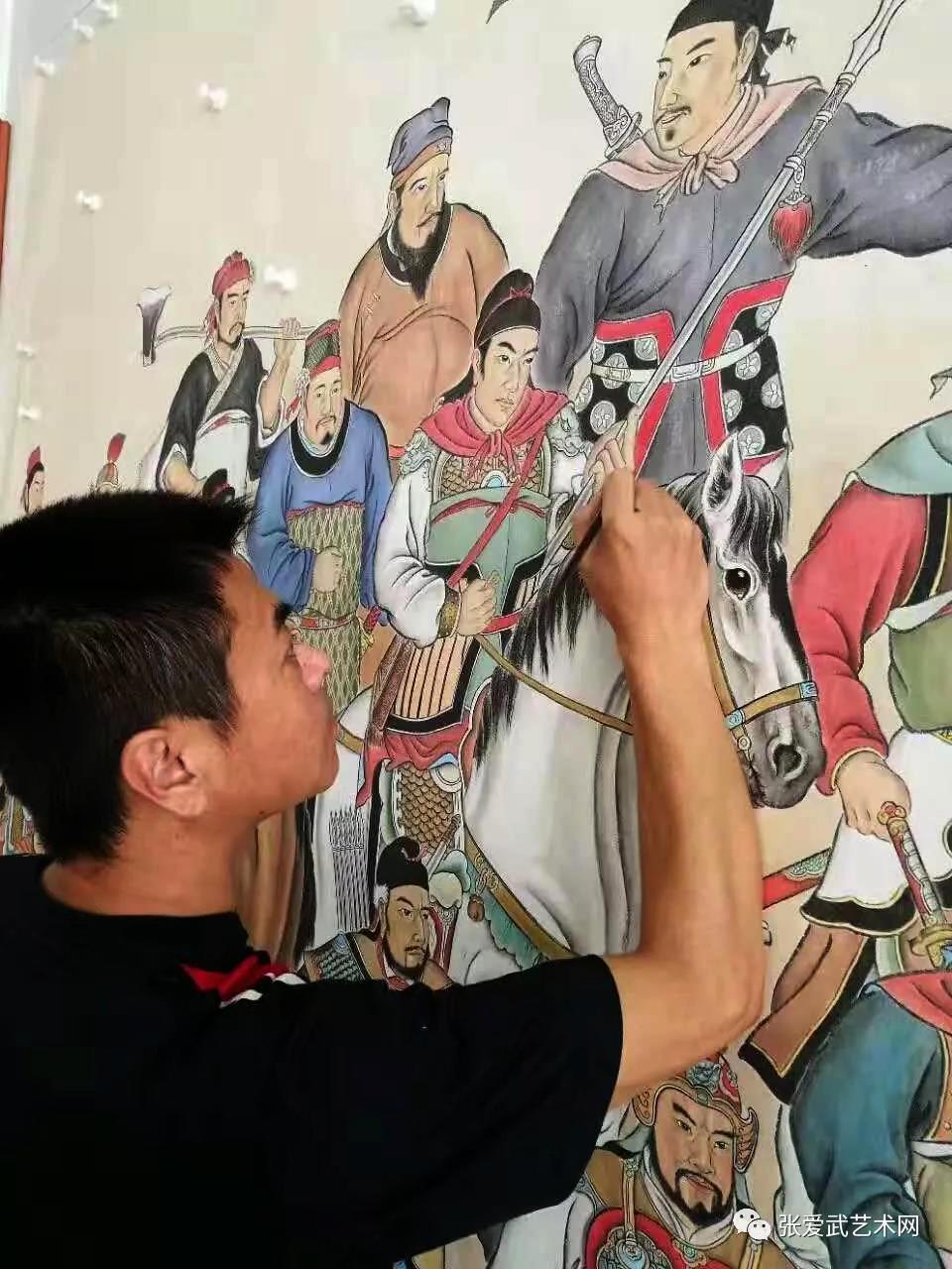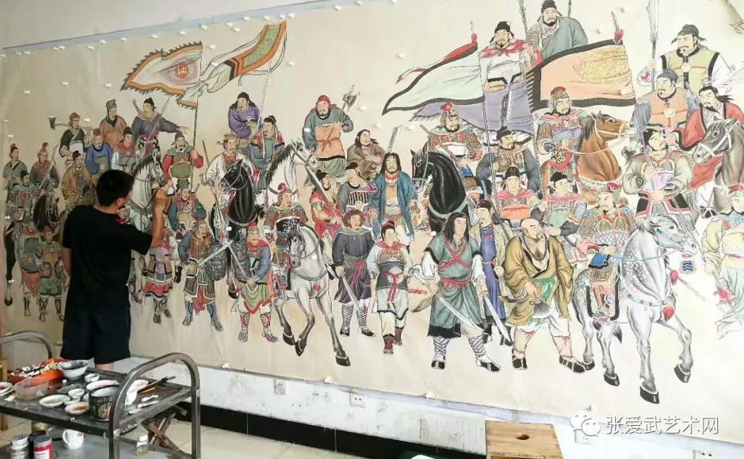 《梁山好汉百将出征图》,是张爱武先生从2015年到2018年,历时三年创作完成的。这幅画,画芯长13米,高2米,展开画卷,一百零八位水浒人物跃然纸上。
