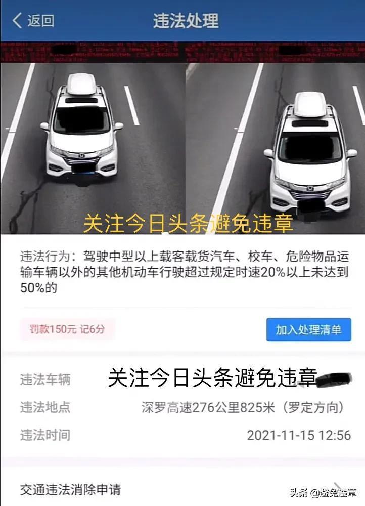 在广东省云浮市深罗高速276公里825米超速被拍了罚款150元记6分
