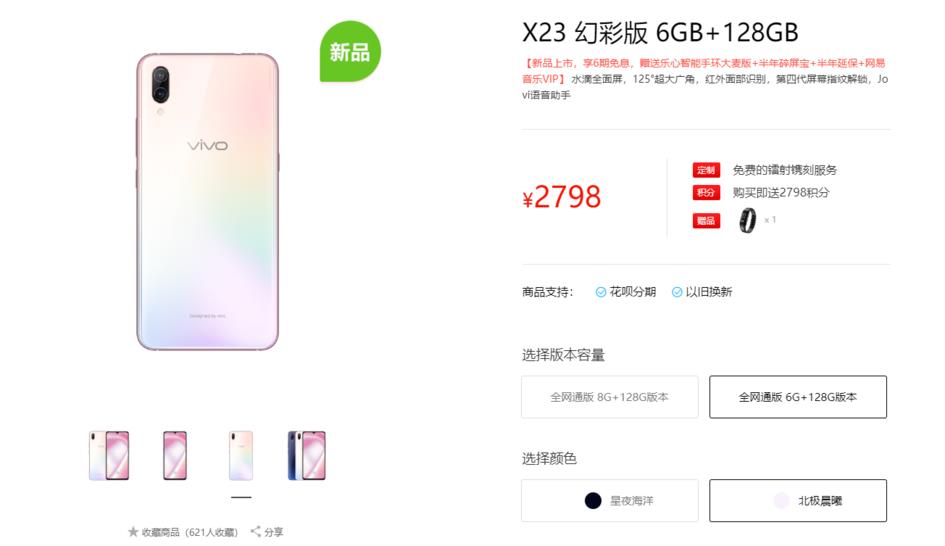 vivo X23 新增幻彩版,6+128GB售价2798元