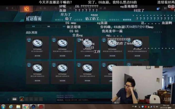 (今年的Ti7 EG血崩,长老直播毒奶预测的现场)