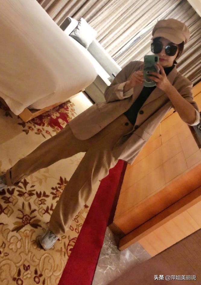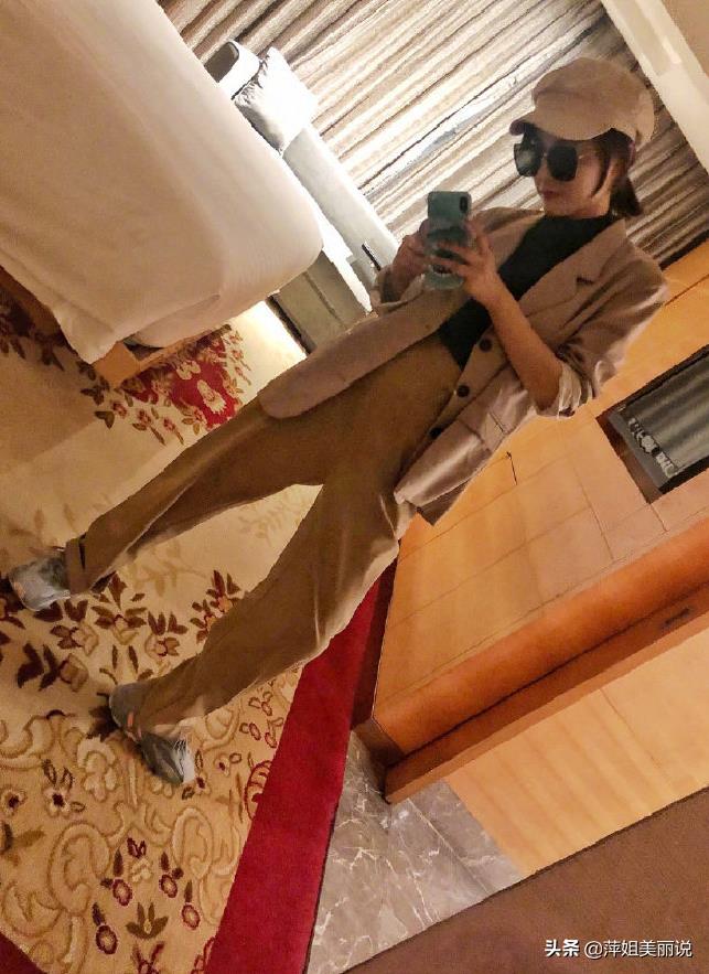 与前面那一件西装相比,吴昕这次穿的款式相对来说要更修身一点,外套所选用的材质也比较柔软,所以穿了才不会显胖,只不过又轮到裤子没搭对了,裤子很像老爸穿的款式,裤脚很没型,上身之后并不能将腿部曲线给包裹出来,达不到显腿长效果,但她整体看上去也不矮,是160的样子。