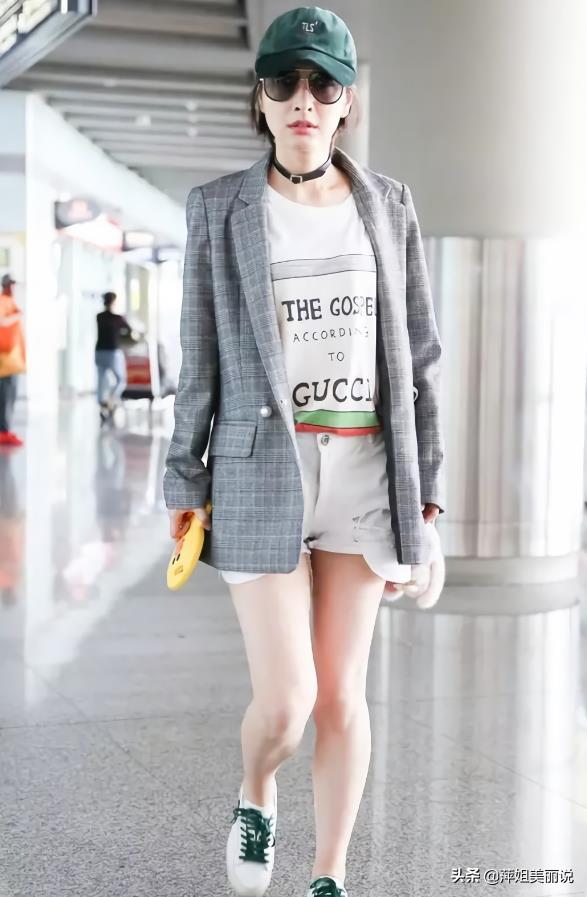 吴昕的这套穿搭是不是有点成迷了?西装外套作为一款出街必备的单品,不管是明星还是素人都很喜欢这么一件单品,不过吴昕身上这件西装款式有点老气了,版型比较松垮,上身会影响气质,搭的白色短裤还可以,T恤的配色和图案却显旧,如此看来,这私服造型她搭得还是失败了。