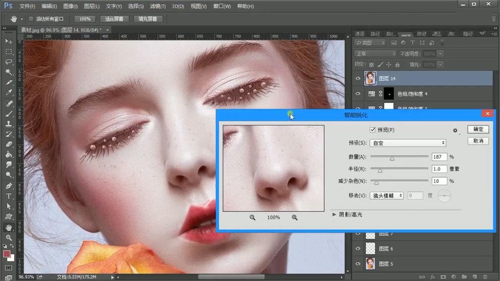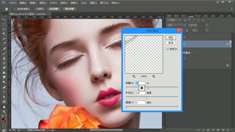 7、再次使用【USM锐化工具】对睫毛进行锐化处理。