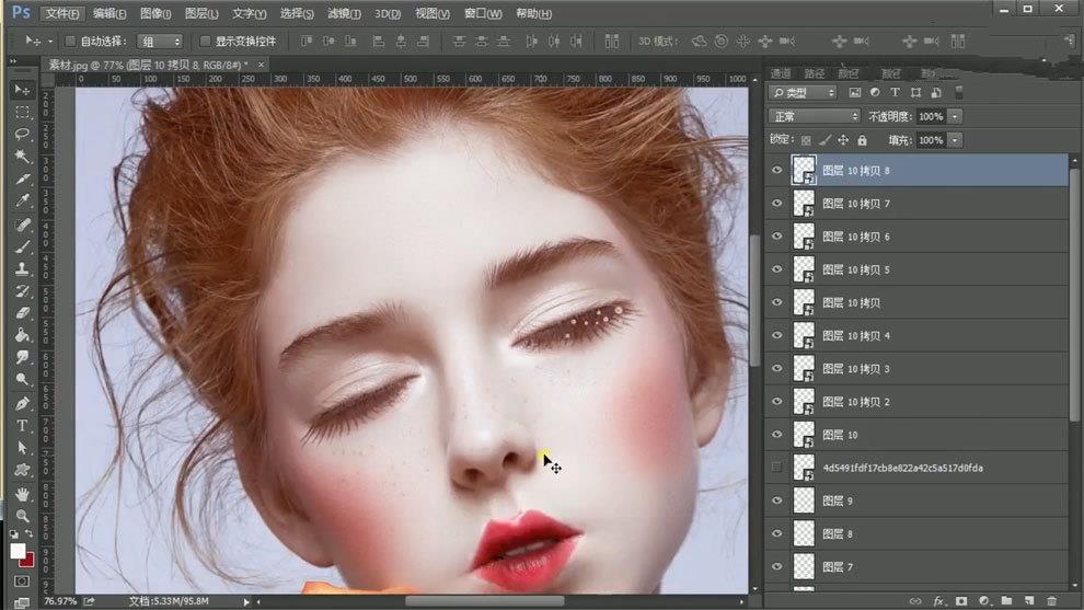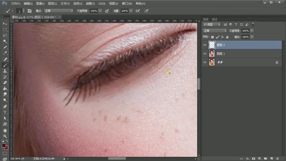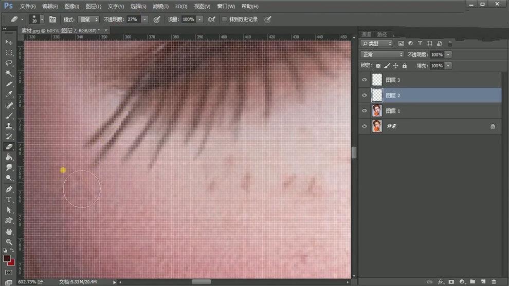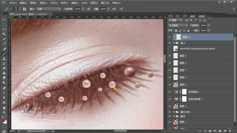 5、使用【橡皮擦工具】对眼睫毛多出来的部分进行处理。