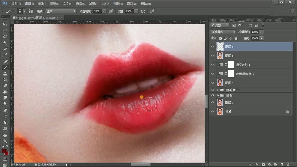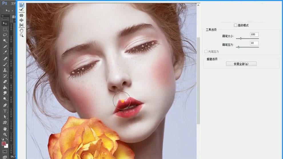 23、使用【液化工具】进行液化,对唇部进行精细修饰。