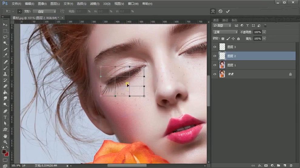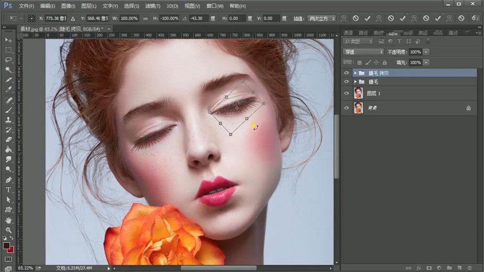 9、【Ctrl+J】复制图层,【Ctrl+T】自由变换,调整位置和角度。