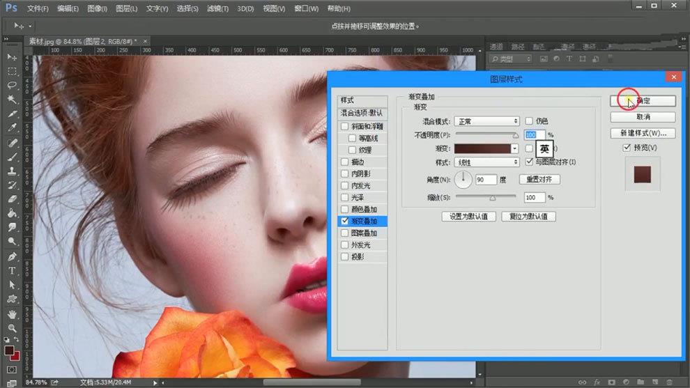 6、使用【图层样式】,为眼睫毛添加渐变叠加,从棕咖到浅咖。