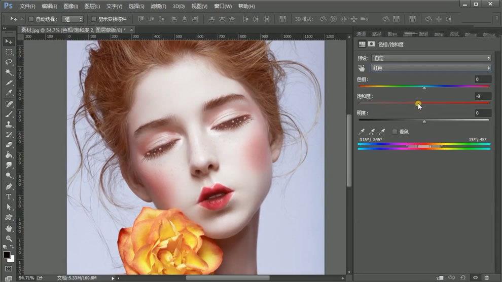 22、使用【色相饱和度】对人物进行调整,【Ctrl+Alt+shift+E】盖印图层。