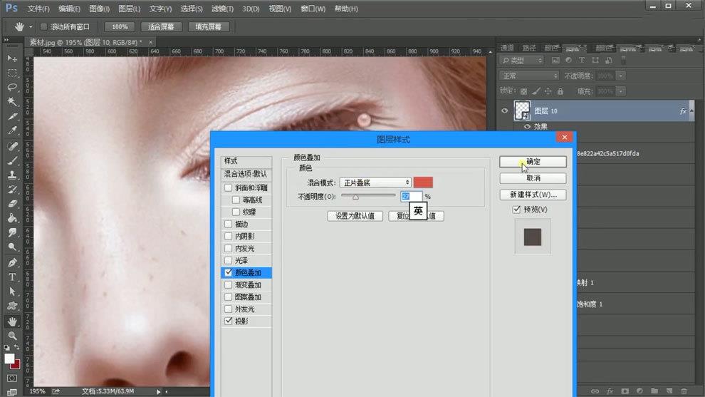 17、使用【图层样式】添加投影,颜色为棕咖色,添加颜色叠加,颜色为红色。