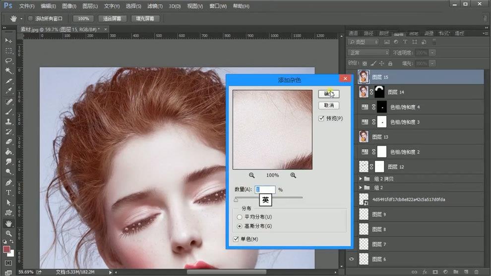 28、【Ctrl+Alt+shift+E】盖印图层,使用【添加杂色】进行调整。