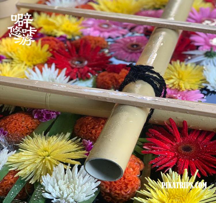 在日吉神社每年11月左右期间,限定可以看到“花手水”,非常美丽,值得特意去看哦