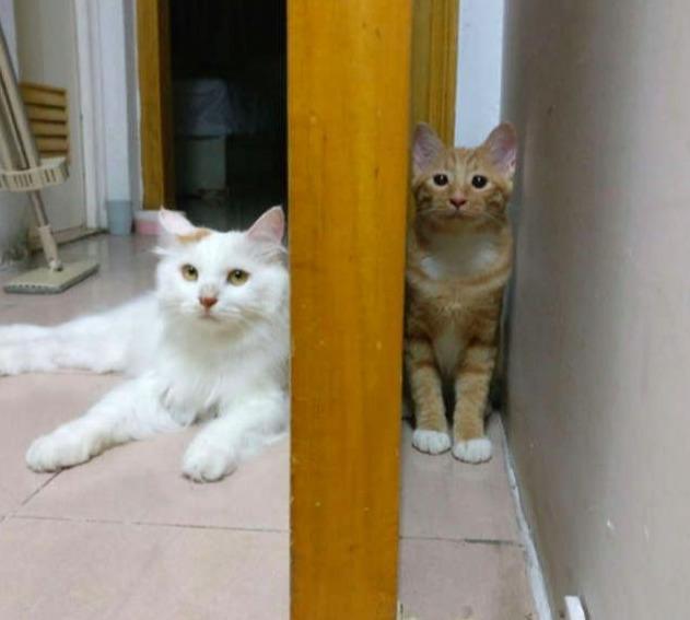 搞笑图片4:猫猫:嘘,别说话,小心又被它发现了!