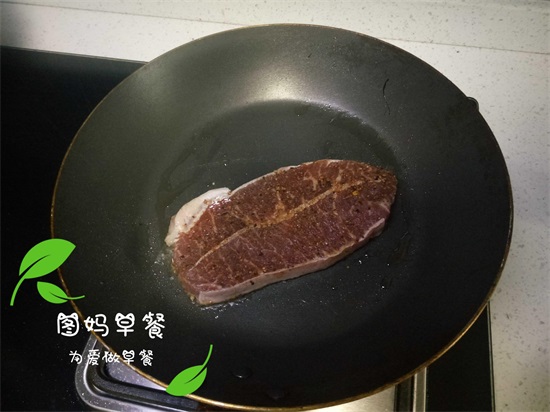1、因为儿子不习惯吃太生的牛排,所以图妈也用平底锅把牛排煎至了5分熟,然后再在空气炸锅里烤制成8分熟,刚刚好,如果你能尝试五分熟,也可以直接省略第一步,但是一定要把牛排的冻水吸干哦