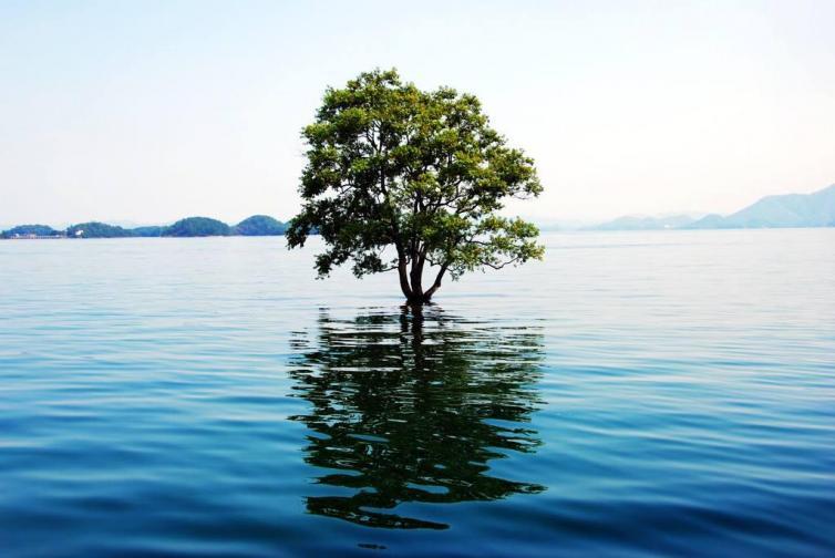 诗人余亚飞赋诗绘图《泾渭图》,江湖汇合处,水线分明,称为"江湖两色"。