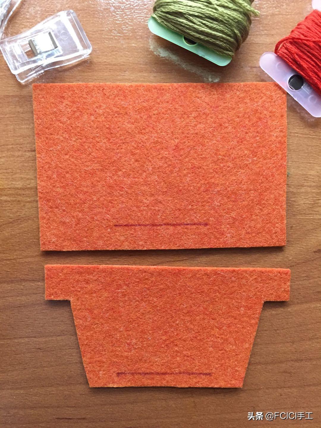 准备一块合适的不织布,根据图样剪好备用、针、线、固定夹。