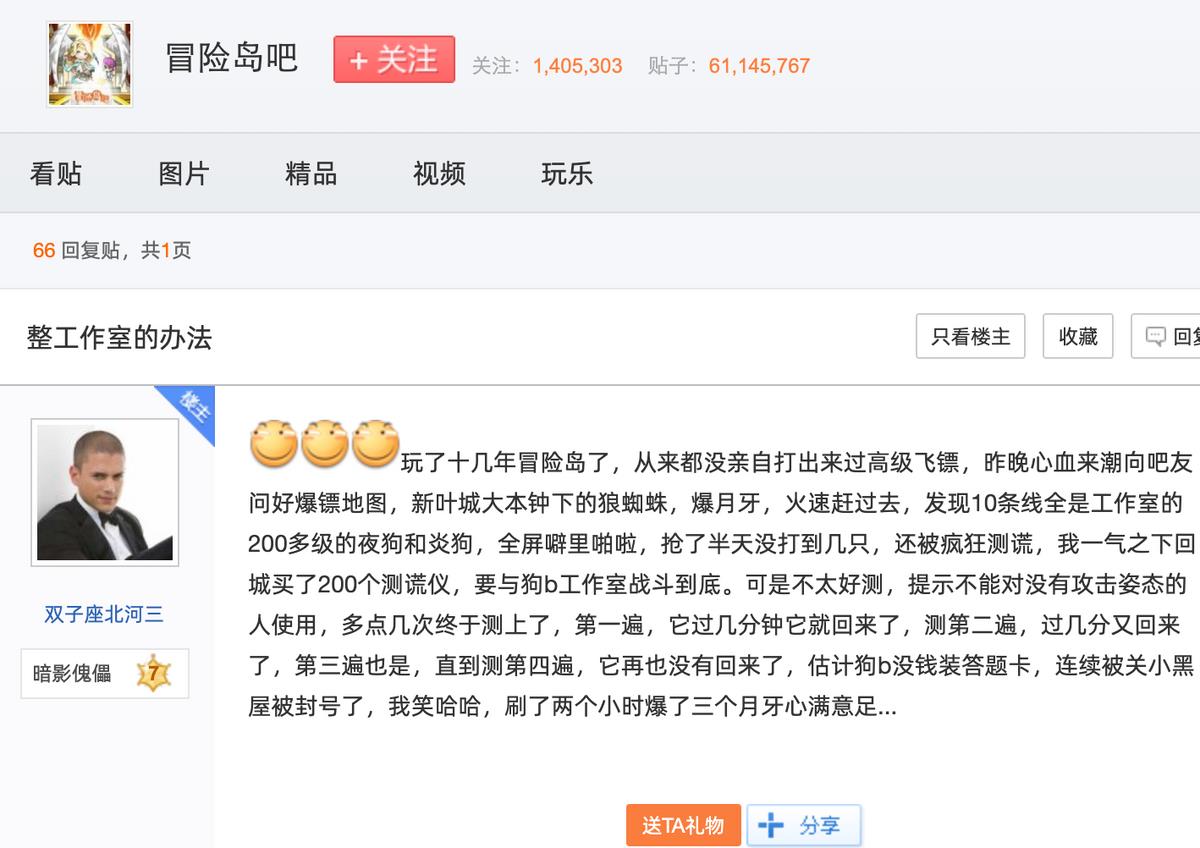 可游戏gzs,商人倒爷,还有混低保的排骨人,对游戏的影响就十分恶劣了。gzs通过制作游戏外挂脚本,成批量创建账号全自动完成主线任务获取游戏货币奖励等,极大的干扰了普通玩家们的游戏体验,曾经红极一时的《冒险岛》打一只任务怪就像在虎口夺食。