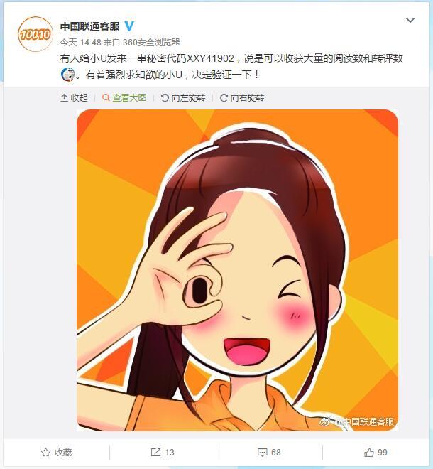 微博神秘代码能获得大量点赞!连中国联通客服都忍不住验证一下