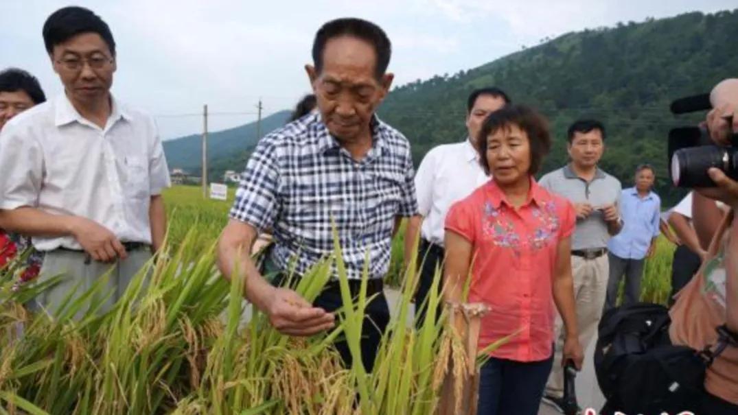 袁隆平爷爷亲自带领徒弟们,观察水稻