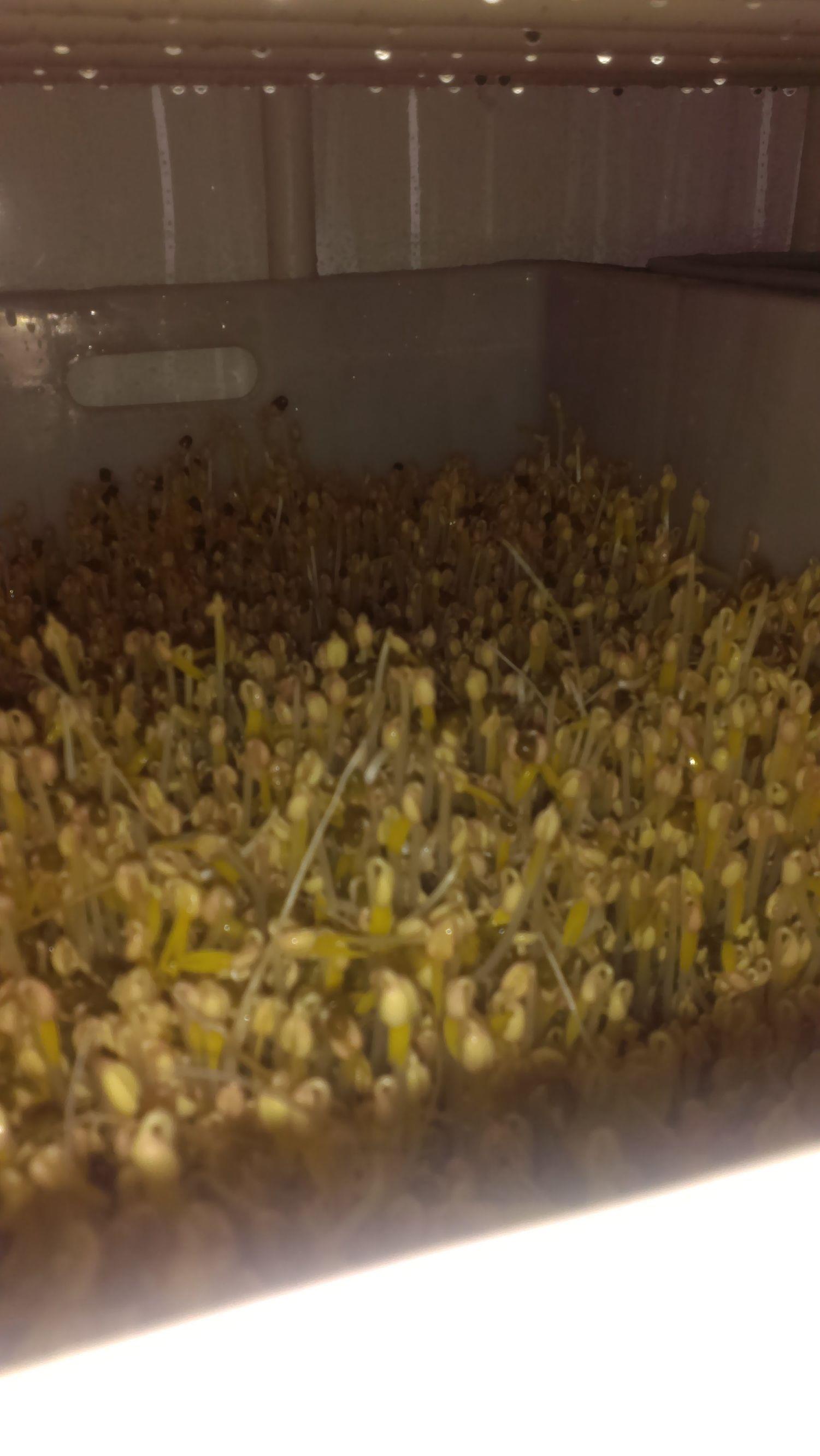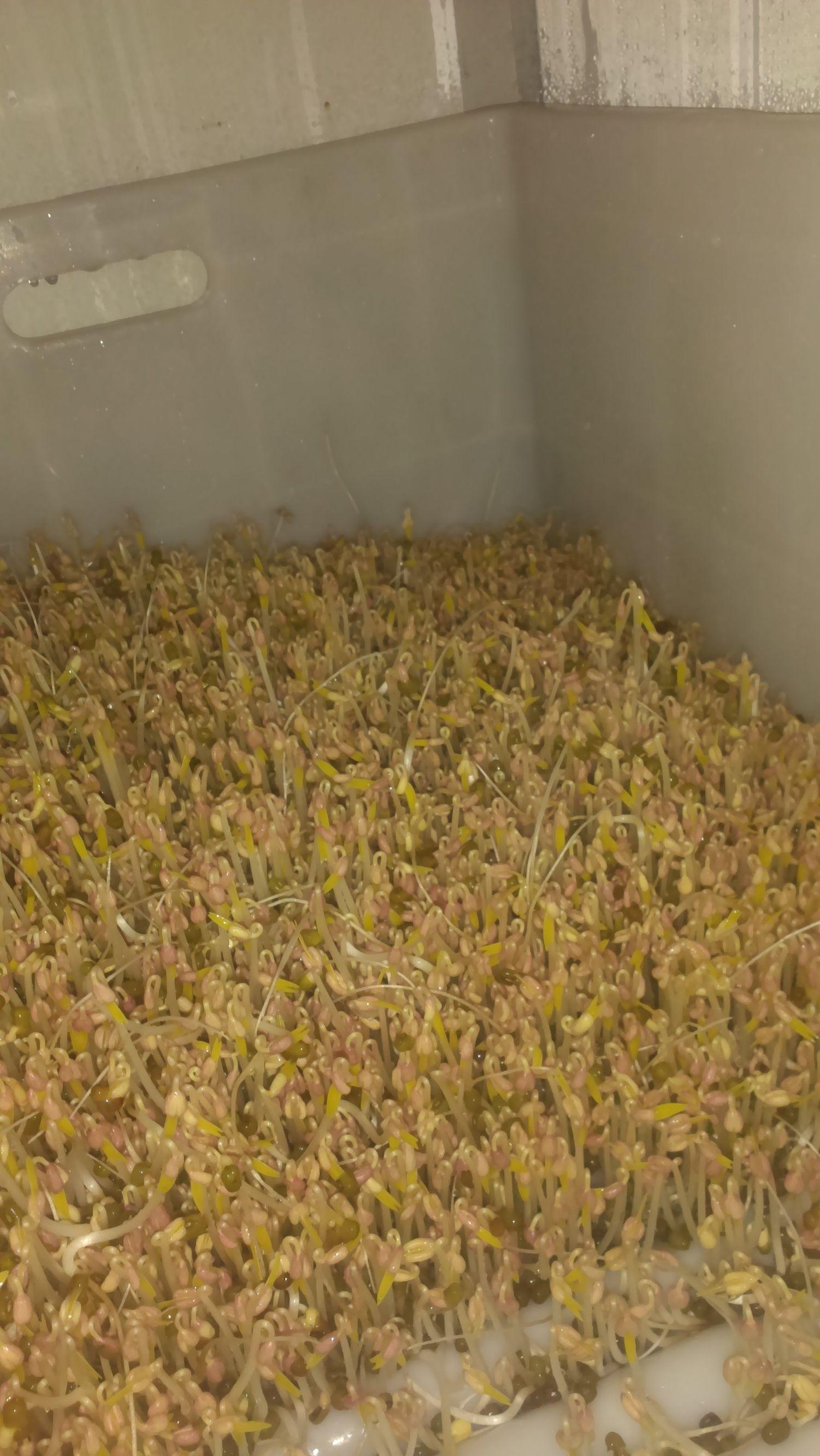 浸泡后的绿豆,准备装恒温箱,泡的时间久了点,有些开始破壳了